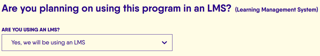 To receive your SCORM file, sign in to Alcohol101+ and navigate to the "My Organization" tab. From there, click the "Edit" button at the top right, then scroll down until you see the "Are you planning on using this program in an LMS?" Toggle this option to yes as pictured below. Once this option has been selected, please reach out to us at alcohol101plus@responsibility.org to receive your SCORM file.